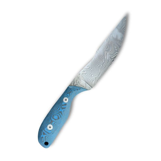 Custom Fixed Blade Knife - Damascus Steel & Blue/Black G10 Handle